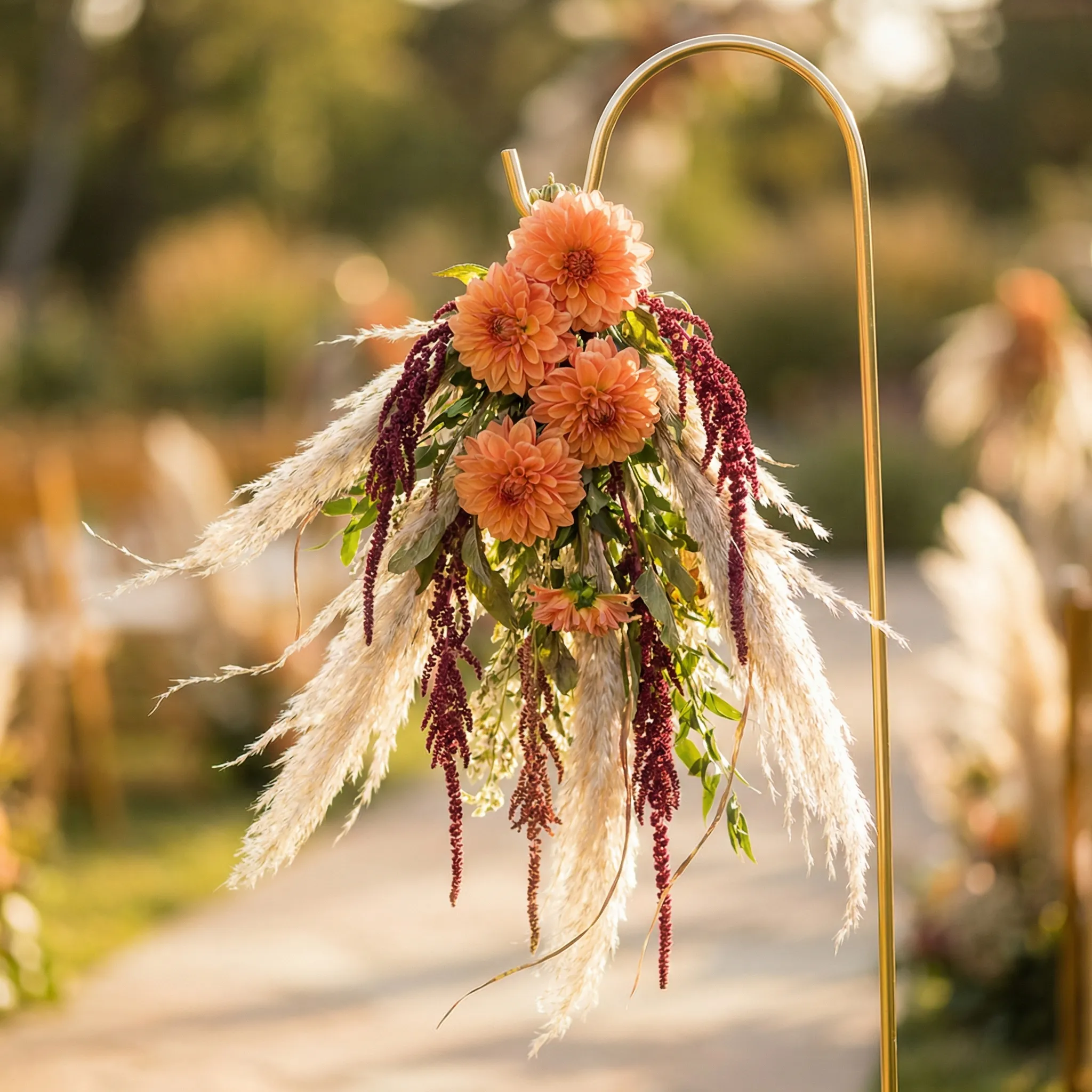 Create ceremony arch mockups showing scale, shape, and floral coverage. Describe the arch and flowers, then get a realistic visual in seconds. Try free.