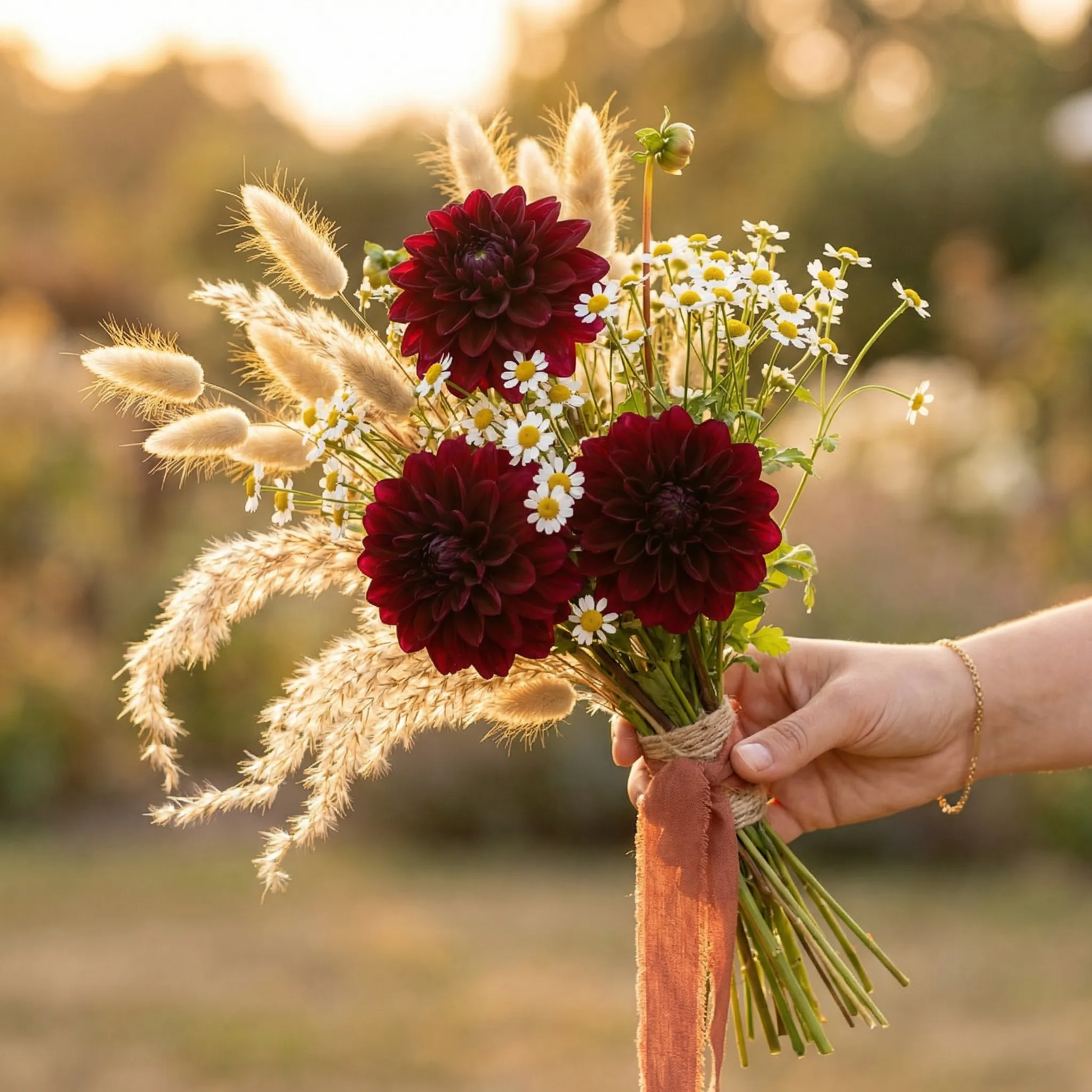 Describe the bridal bouquet first, then request a smaller version with the same flowers and palette for bridesmaids. FloraViz keeps the design consistent so the full party looks cohesive. No rebuilding from scratch for each attendant.