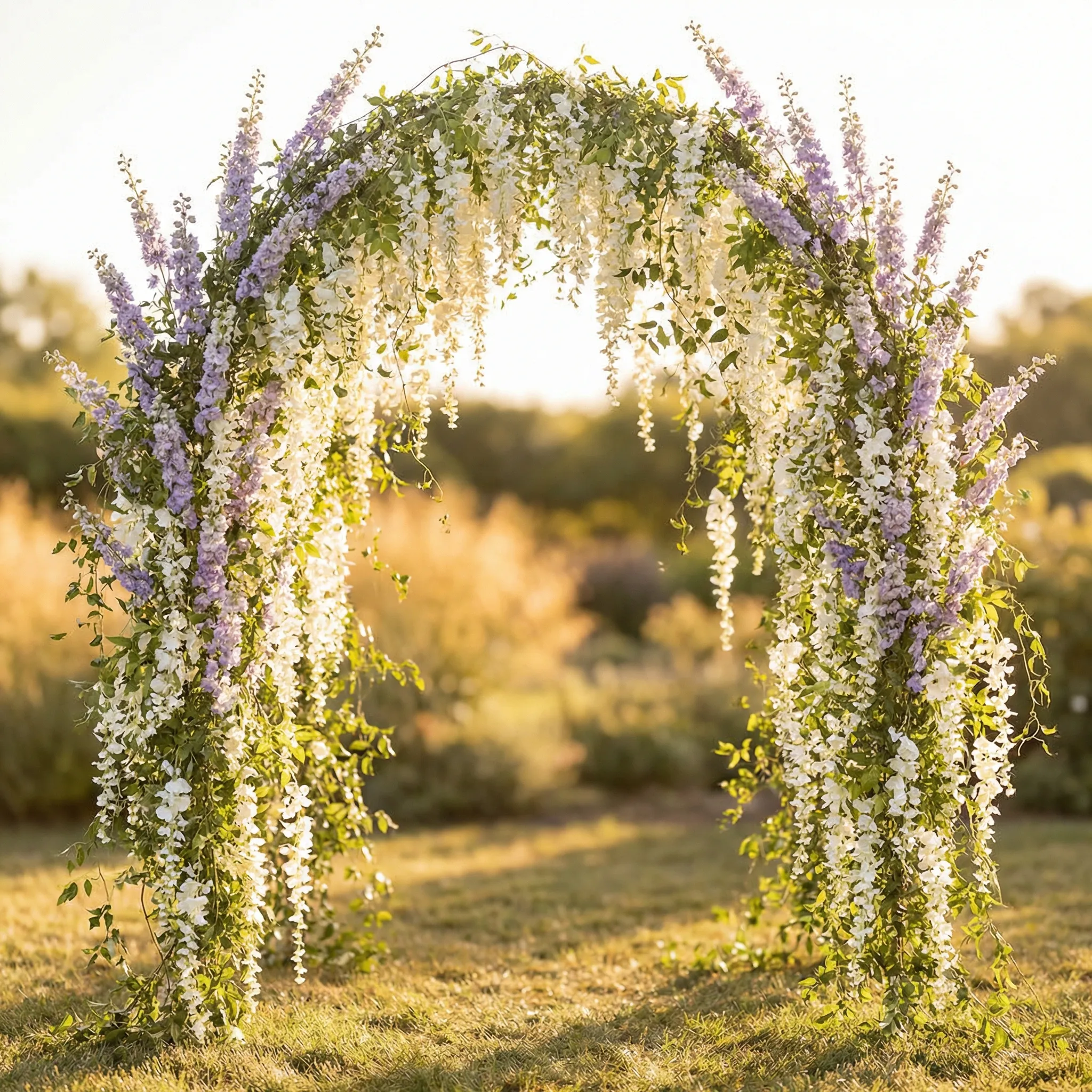 Create ceremony arch mockups showing scale, shape, and floral coverage. Describe the arch and flowers, then get a realistic visual in seconds. Try free.