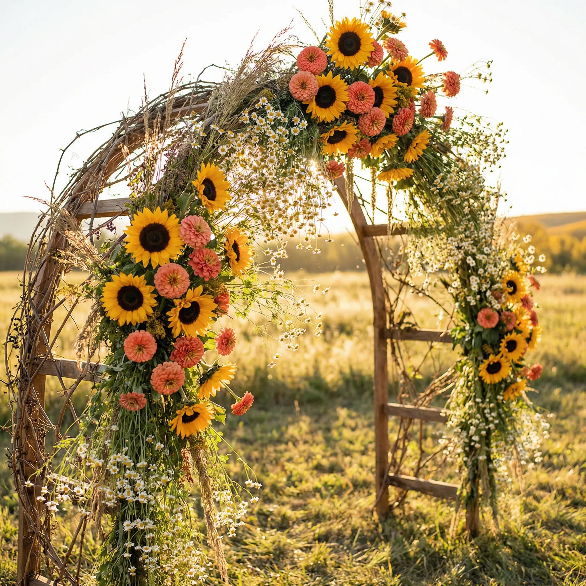 Create ceremony arch mockups showing scale, shape, and floral coverage. Describe the arch and flowers, then get a realistic visual in seconds. Try free.