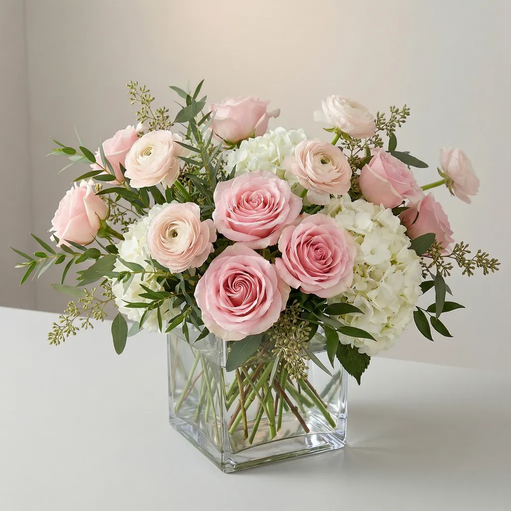 Want to change a detail? Just ask. Type 'Make the roses burgundy' or 'Swap for a gold vase' and watch FloraViz update it instantly.